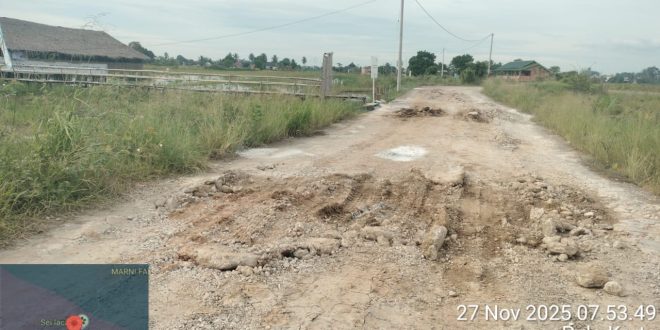 “Jalan ini baru di bangun 6 bulan lalu Pak, sekarang sudah rusak parah akibat lalu lalang mobil molen,” ujar seorang warga yang enggan disebut namanya, Minggu (14/12/2025).