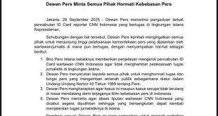 Beritapali.com |Jakarta – Persatuan Wartawan Indonesia (PWI) Pusat menyampaikan keprihatinan atas pencabutan kartu liputan Istana yang dialami wartawan CNN Indonesia usai melontarkan pertanyaan mengenai program Makan Bergizi Gratis (MBG) kepada Presiden Prabowo Subianto, Sabtu (27/9). …