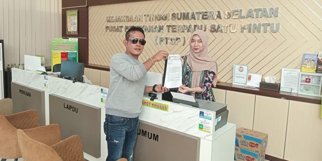 Beritapali.com |Palembang – Ketua Lembaga Pemerhati Situasi Terkini (PST) Dian HS bersama Sekretaris Jenderal (Sekjend) Sukirman melaporkan Kepala Desa (Kades) Lubuk Bandung, Kecamatan Payaraman ke Pelayanan Terpadu Satu Pintu (PTSP) Kejaksaan Tinggi Sumatera Selatan (Kejati Sumsel) di Jalan Gubernur H Bastari, Jakabaring, pada Kamis (09/10/2025).