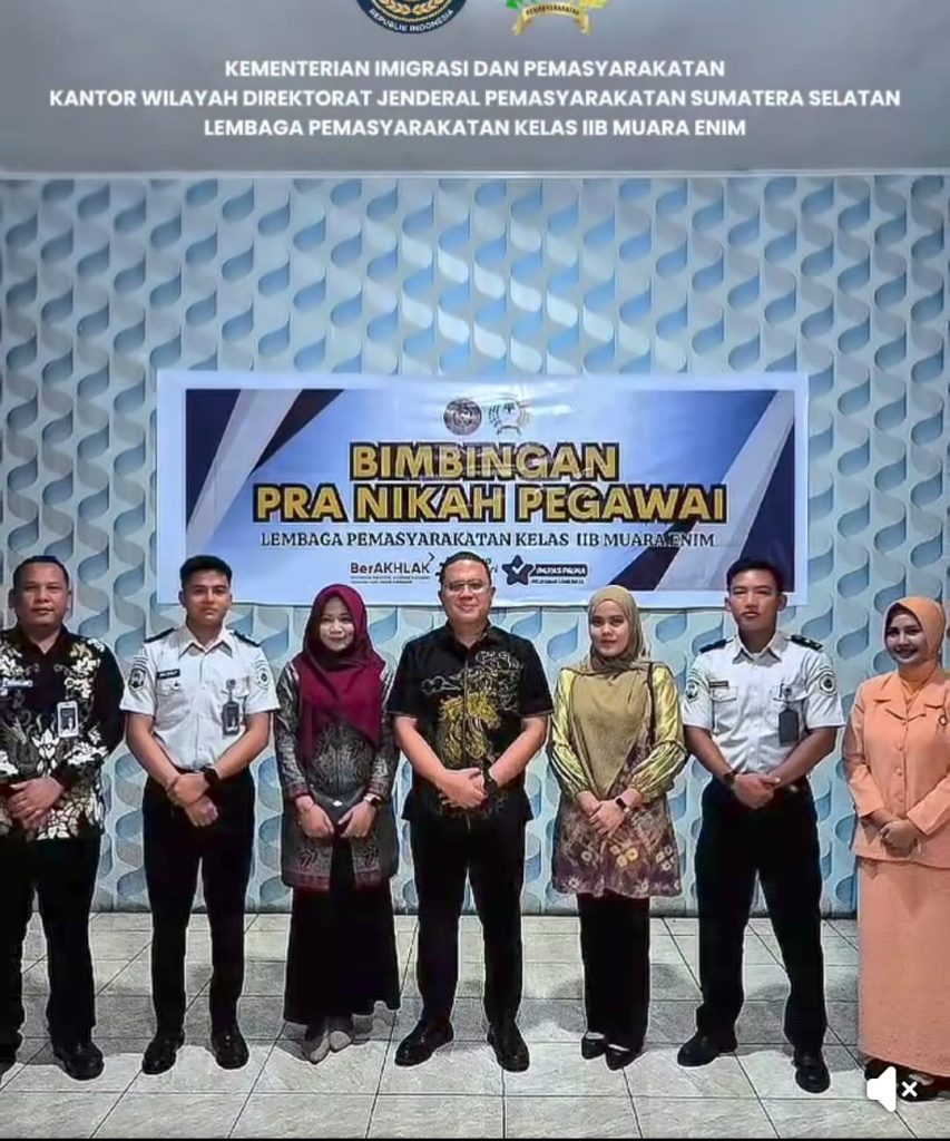 ” Sebagai wujud keteladanan moral dan komitmen institusi dalam kesejahteraan pegawai dan juga komitmen pimpinan dalam Bimbingan Pra-Nikah Pegawai Lapas,” Tutur Kalapas Kelas II B Muara Enim, Auliya Zulfahmi kepada awak media.