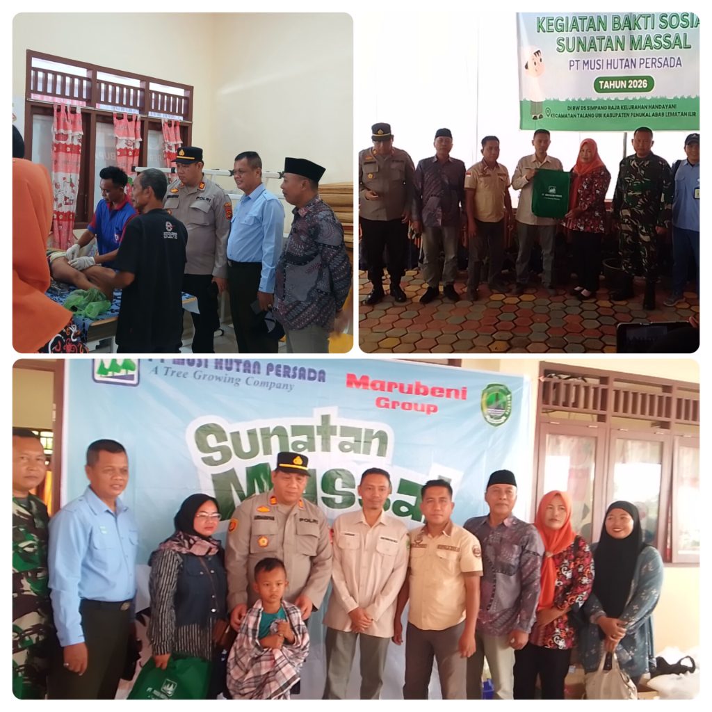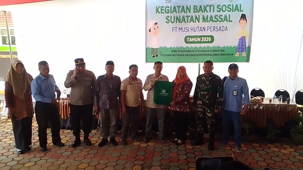 ‎Pali, Beritapali.com – PT Musi Hutan Persada (MHP) kembali menunjukkan komitmennya dalam memberikan kontribusi positif bagi masyarakat di sekitar wilayah operasional perusahaan. Melalui program Corporate Social Responsibility (CSR), PT MHP menggelar kegiatan bakti sosial sunatan massal yang dipusatkan di Lapangan SDN 28 Talang Ubi, Simpang Raja, Kelurahan Handayani Mulia, Sabtu (24/01/2026).