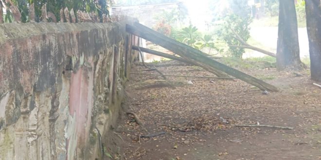 Tanah abang KP/Beritapali.com –Pagar beton SD Negeri 4 Tanah Abang saat ini kondisinya memperihatinkan sudah buram, gompal di sana sini bahkan pagar beton yang sudah termakan usia tersebut condong nyaris 45 derajad , dan mirisnya lagi pondasi pagar sudah keluarkan dari tanah di karenakan tergerus air. Bangun tersebut menunggu saat-saat akan ambruk , demikian pantaun media ini , senin/13/10.