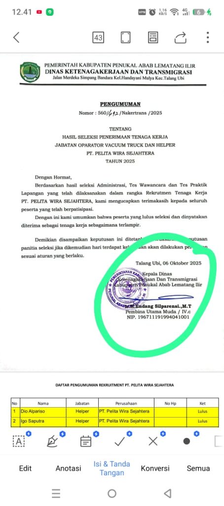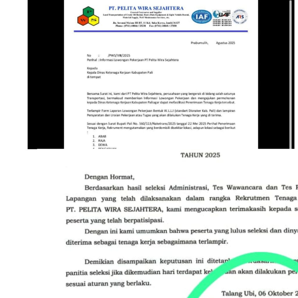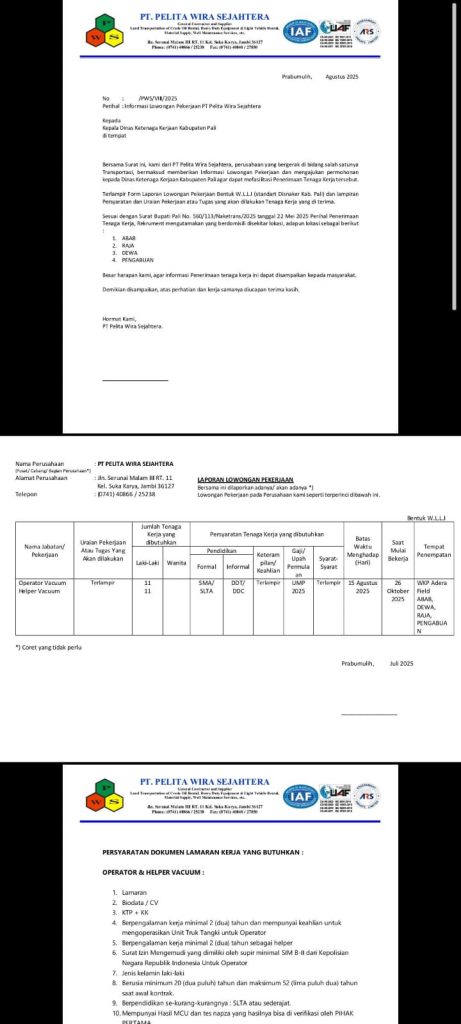 ‎Pertanyaan Besar untuk Disnaker PALI dan PWSKetidakjelasan proses seleksi memicu pertanyaan soal peran Disnaker PALI sebagai fasilitator sekaligus pengawas rekrutmen. Idealnya, Disnaker harus menjamin proses yang jujur dan transparan, terutama pada lowongan kerja penting seperti proyek Pertamina Hulu Rokan.